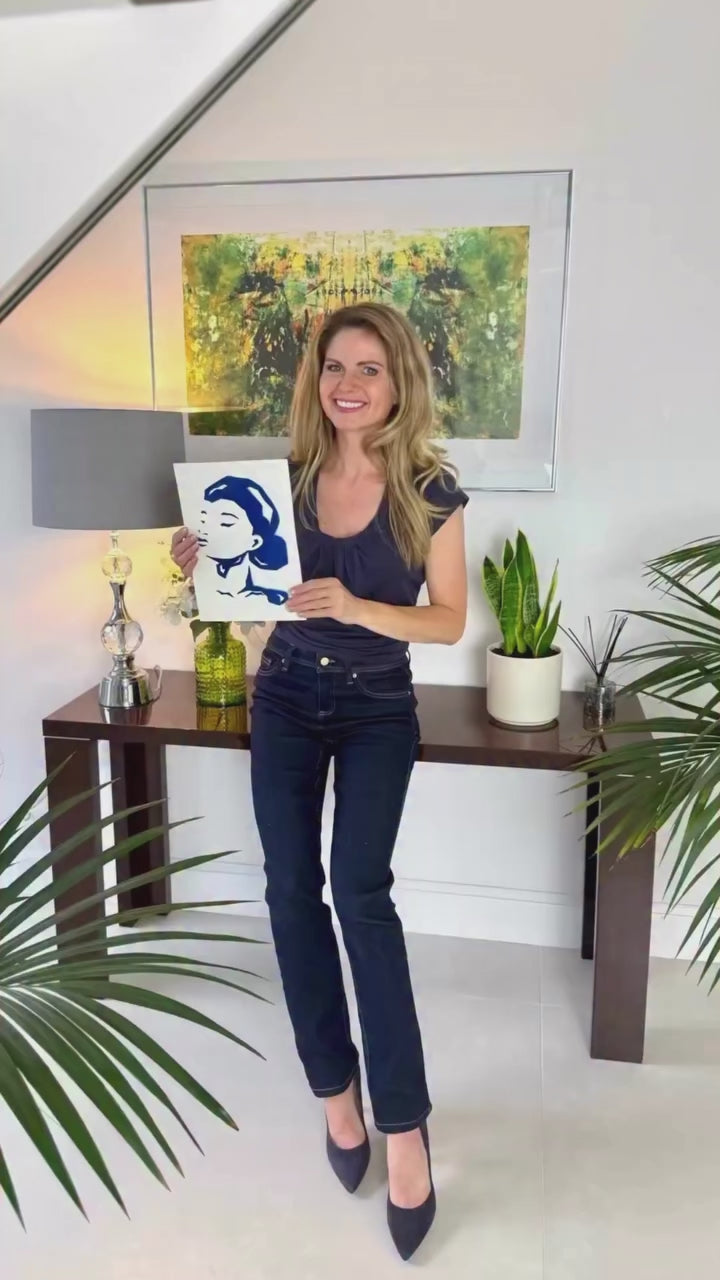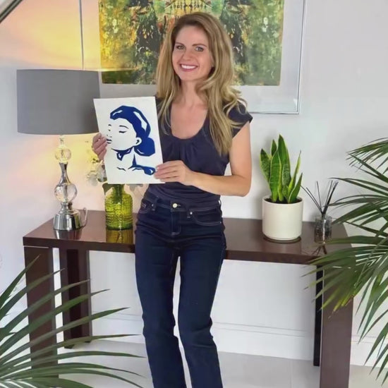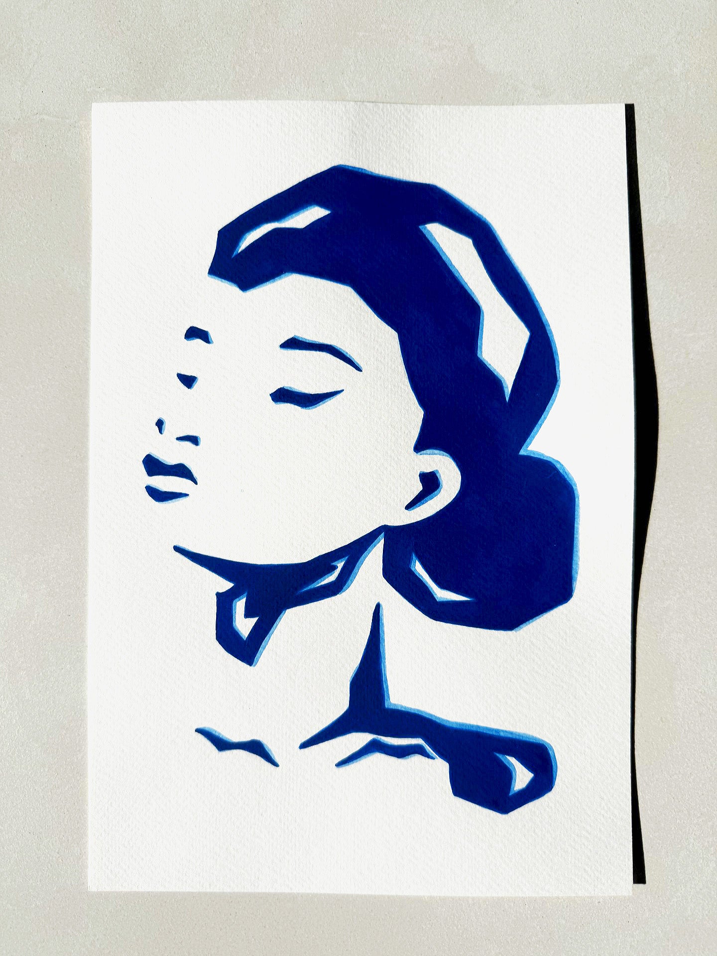 Bring bold elegance to your space with Tess, a striking one-of-a-kind original artwork. Hand-painted with multiple layers of deep acrylic blue. This A4 portrait captures the profile of a powerful career woman inspired by Tess from the movie Woman of the Year (1942), played by Katharine Hepburn.